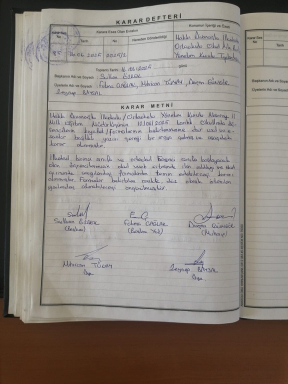2025-2026 Eğitim Öğretim yılında da okulumuz öğrencilerinin aynı forma ile eğitimlerine devam etmesi Okul Aile Birliği tarafından yapılan toplantı neticesinde karara bağlanmıştır.