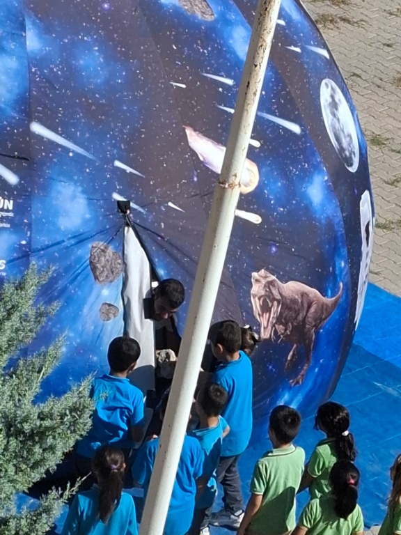 Öğrencilerimizin uzay farkındalığını arttırmak amacıyla okulumuzun bahçesine uzay çadırı kuruldu. Çadırın bombeli yapısı sayesinde tavana yansıtılan görüntüler öğrencilerin kendilerini uzayda gibi hissetmelerini sağladı. Öğrencilerimiz gezegenler, gök cisimleri, onların uzay boşluğundaki hareketleri gibi görselleri izleme fırsatı buldular.